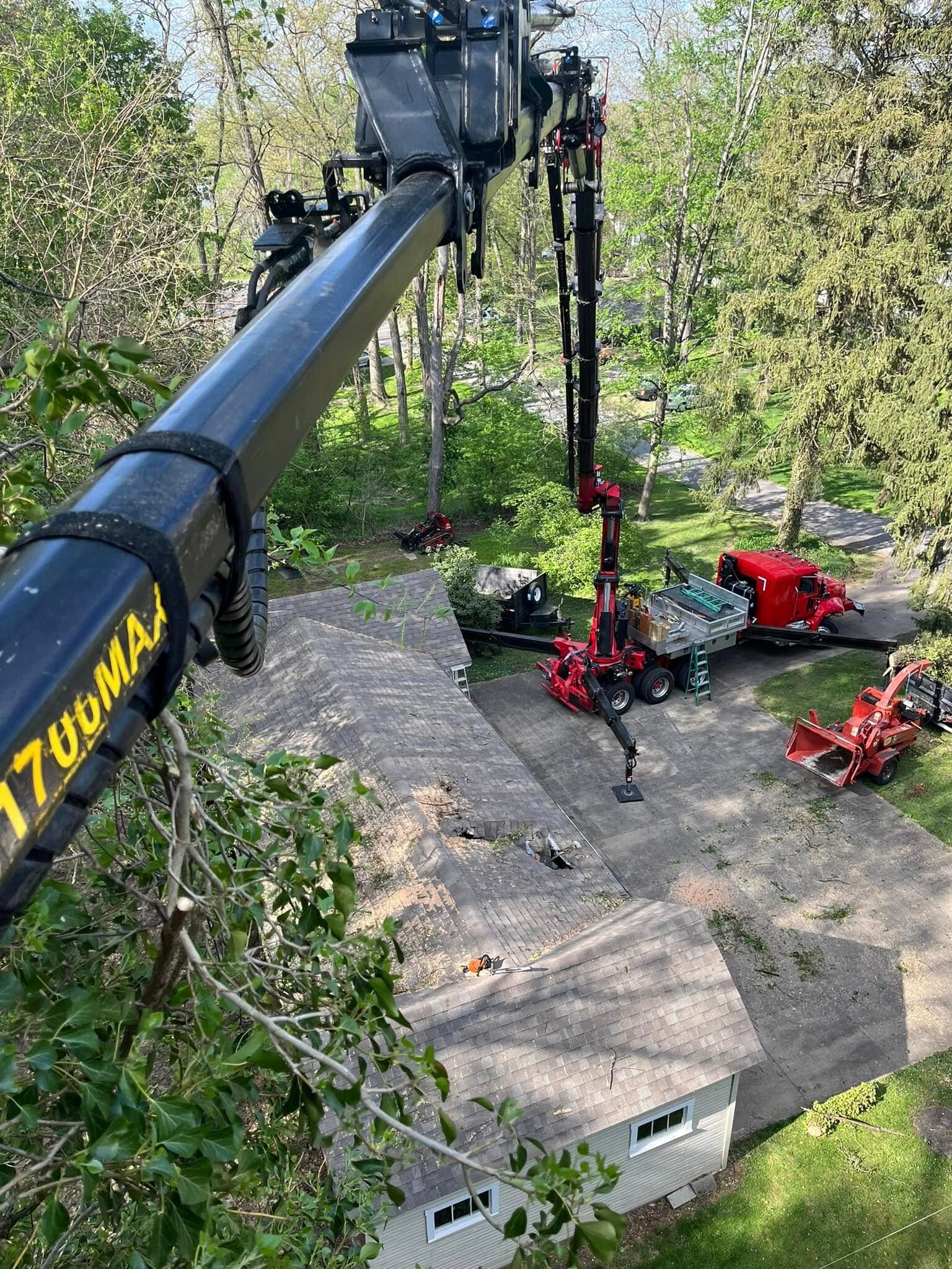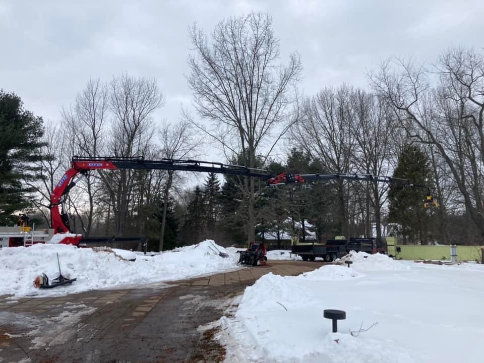 Knuckle Boom Crane Service to safely remove large trees near homes, power lines, or tight spaces